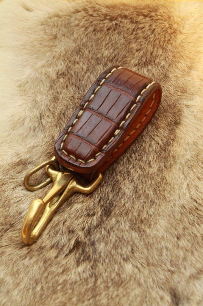 レザーロープ コアのキャップ部をクロコダイルでカスタムしました。ループホルダーと合わせ腰元を飾ります。クロコご注文の方のみオーダー可