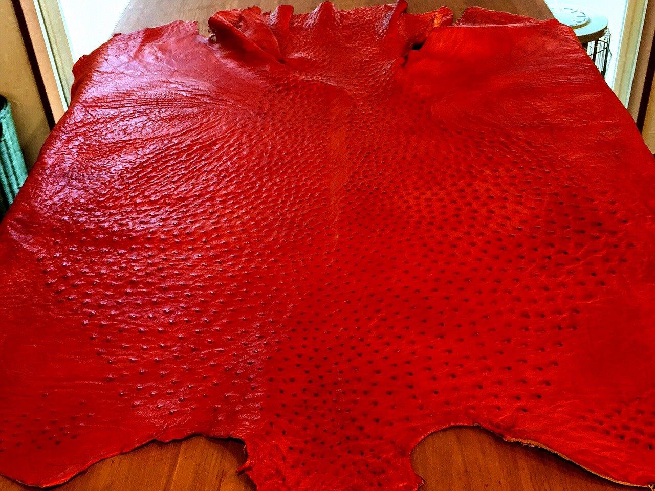 一枚一枚職人の手作業による《おか染め》により、独特なバーミリオン(朱色)オーストリッチが完成しました!二度と入手出来ない特別な一枚です。